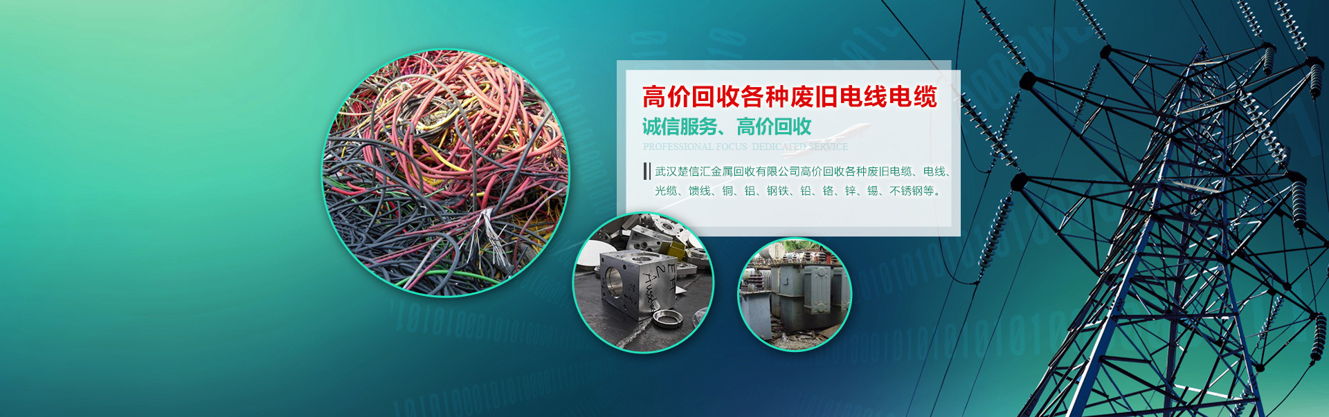 武漢楚信匯金屬回收有限公司高價回收各種廢舊電纜、電線、光纜、饋線、銅、鋁、鋼鐵、鉛、鉻、鋅、錫、不銹鋼等。 1、承接大型樓房、酒店拆遷工程,廠房搬遷及搬遷前的廢舊拆除工程 2、長期回收各類空調,酒店不銹鋼廚房設備,舞廳音響設備,企事業單位的機電、機床設備,庫存積壓產品以及 各種清倉報廢物資。 3、各種管件、電纜、電機、電瓶、電動工具。 4、報紙、書本以及成品或半成品廢料。 我們出價合理:廢舊金屬行情經常變化,價格時升時降,我們把握實時的市場行情,給您提供新的價格信息。以合理的價格,變廢為寶!一個電話便可為您提供回收,拆除清場,一條龍的優質服務!‘免費上門看貨,免費評估’ 聯系電話:13971365360 林先生 QQ:934406246 本公司專業從事庫存積壓處理物資的買賣,廢舊物資的回收,機電設備,五金電料,日用百貨,服裝布料,廠礦車間的所有機械設備 的回收,以及破銅爛鐵等金屬物品的回收。總之,從事所有有價值物品的收購和處理。常年高價上門收購:電腦,電視,冰箱,冰柜,家具,交通工具(如自行車,電動車,摩托車等),酒店餐館設施,餐具和灶具等。價格肯定 高于小商販的價格。